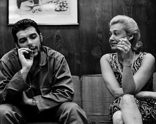 Lisa Howard (who feminist Gal Gadot will presumably play very sympathetically) schmoooozing with her hearthrob Fidel Castro, the jailer and torturer of the most and longest-suffering women political prisoners in the modern history of the Western Hemisphere.)  On right: Lisa Howard (who peace-nik Gal Gadot will presumably play very sympathetically) during a party she threw in honor of Che Guevara in her Manhattan bungalow. Che Guevara was plotting to blow up the Statue of Liberty in cahoots with the Black Liberation Front during this very visit to Manhattan in Dec. 1964. (We provide this stunning and surefire movie-attention-grabber to movie producer Gal Gadot for her forthcoming movie on-the-house.Thorough documentation for this terror plot provided here. )