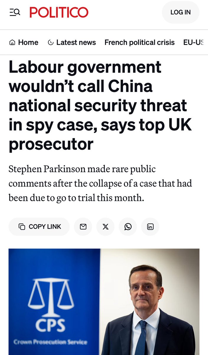 If you haven’t been paying attention, the weak and gormless Labour government sabotaged a trial against spies who betrayed their own country by collecting and sending sensitive information to the CCP. Why?