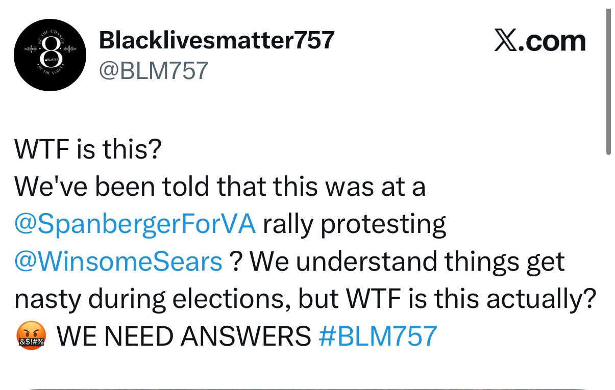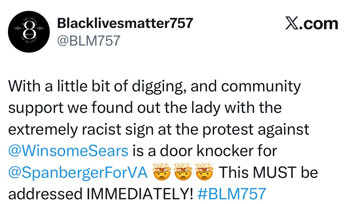 A liberal protester targeting Virginia Lt. Gov. Winsome Earle-Sears with a racist sign has gone viral and caused confusion over her intentions.