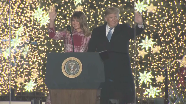 FLOTUS lights National Christmas Tree in candy cane colors.  She looks so happy and festive!