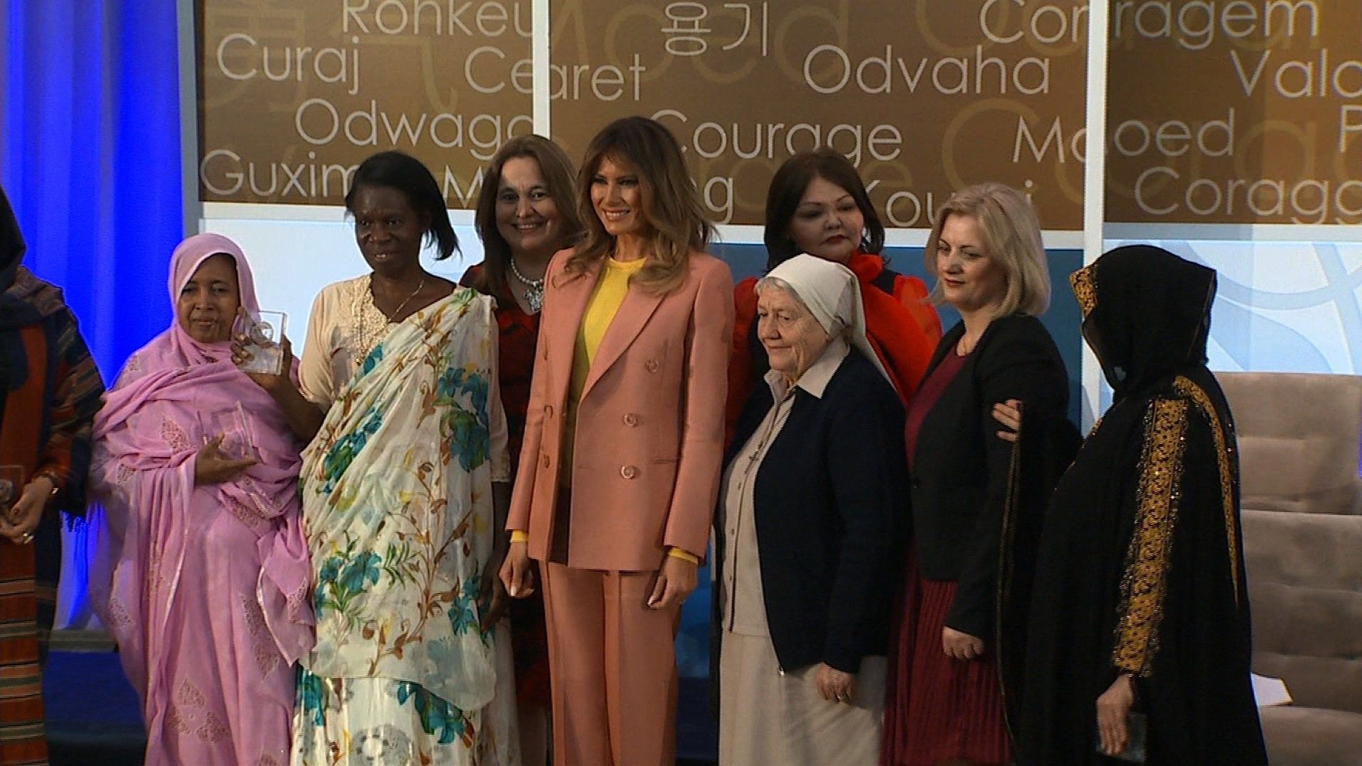 http://www.dailymail.co.uk/femail/article-5537967/Melania-Trump-dons-pastel-pink-suit-make-cookies-honor-women-courage.html