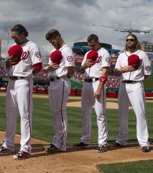 I've loved baseball since boyhood. I've been a Mets fan since the day they were born, a Red Sox fan since that remarkable 1967 pennant race, an Angels fan from living for a time in southern California, though I thought Vin Scully's retirement should have been declared a national holiday (day of mourning?) in its own right. I've never flinched from hearing and saluting when "The Star Spangled Banner" was played before a game I attended in person.