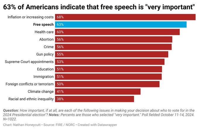 Free Speech Is Now The Second-Most Important Issue For Voters, And That's Very Bad News For Kamala
