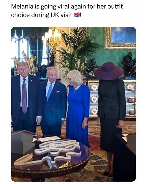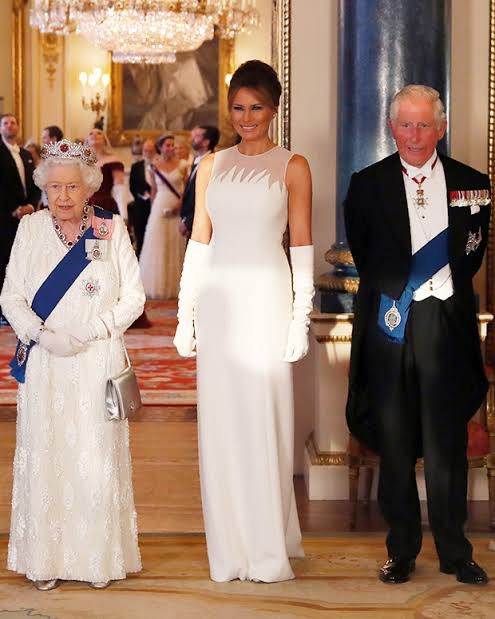 Donald Trump and First Lady Melania Trump arrive for the State Banquet hosted by King Charles III and members of the Royal Family
