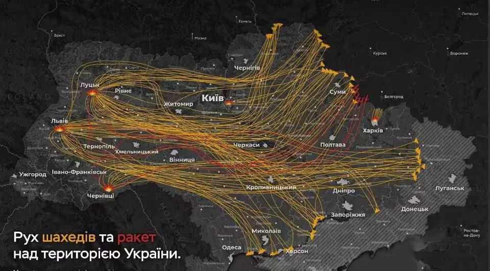 Ukrainian President Volodymyr Zelenskyy posted on X, saying Russia fired over 300 drones, along with more than 30 cruise missiles.