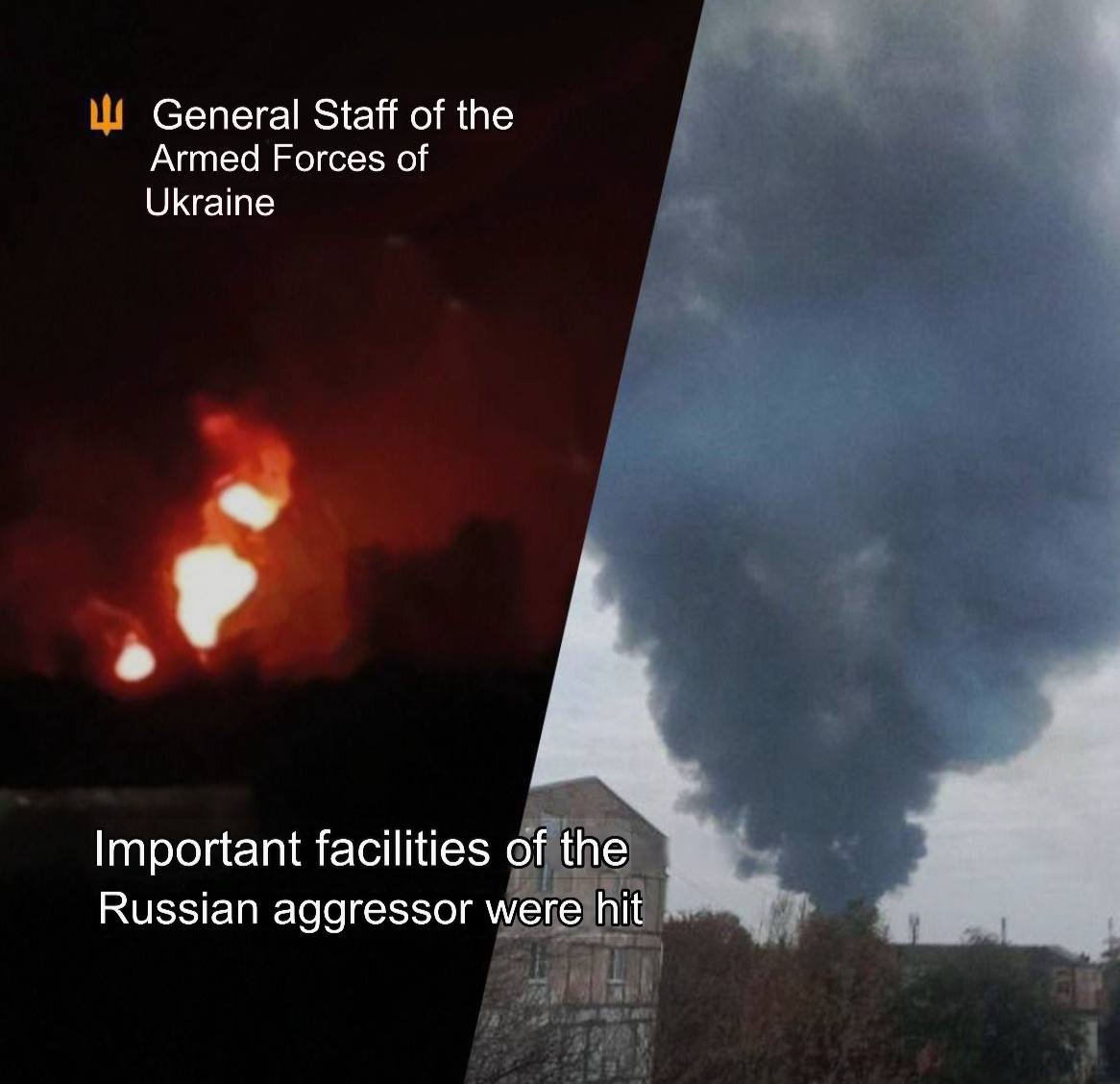 💥👊 Update: The result of the successful actions of the SSO of Ukraine —destruction of an oil depot in the village of Gvardiyske and FDKU of Gvardiyske plant in the village of Kar’erne, Saky district.
