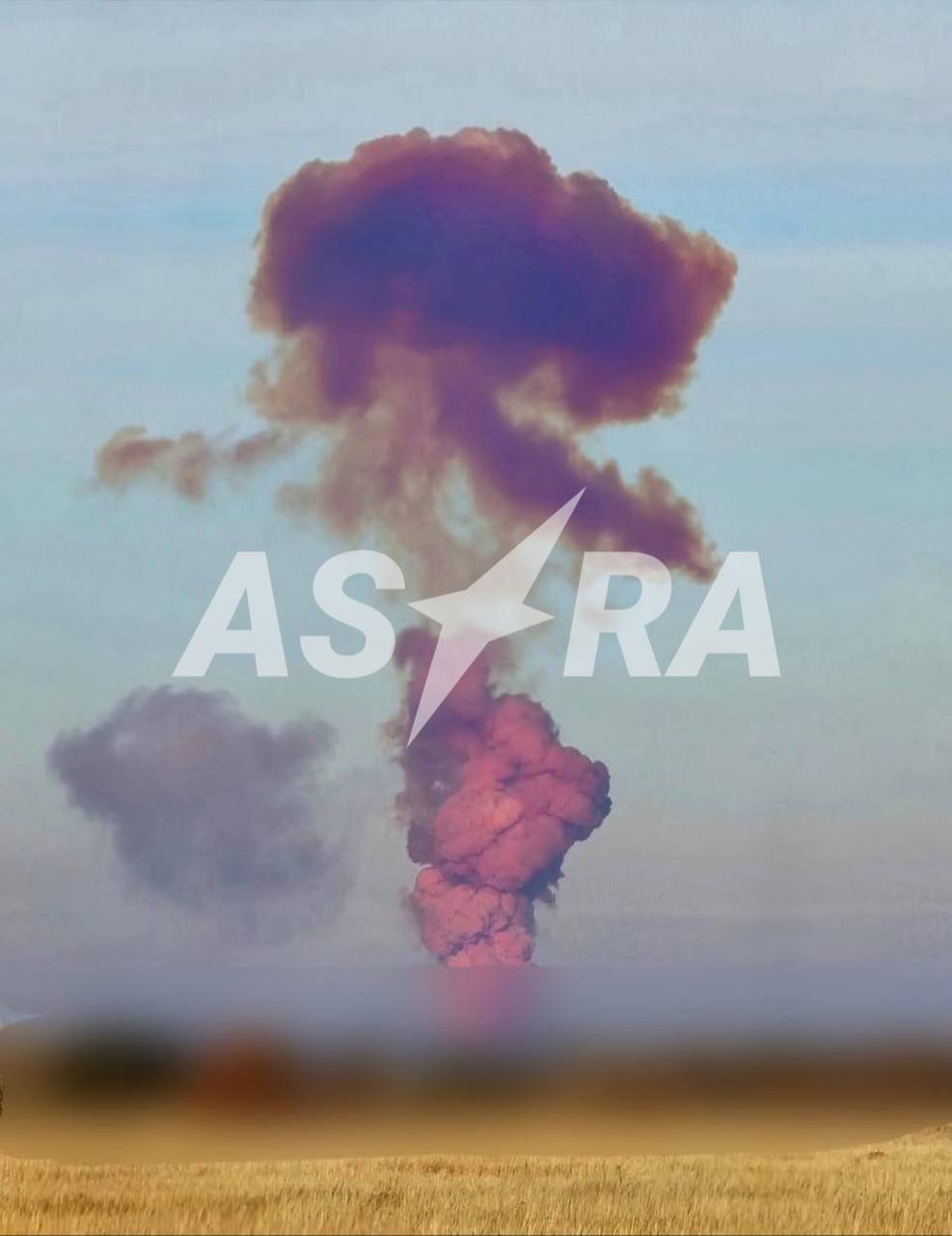 A purple smoke cloud rose over Russia's Yasny missile base in Orenburg region following an explosion, with locals reporting a failed rocket launch that detonated mid-air, Astra reports.
