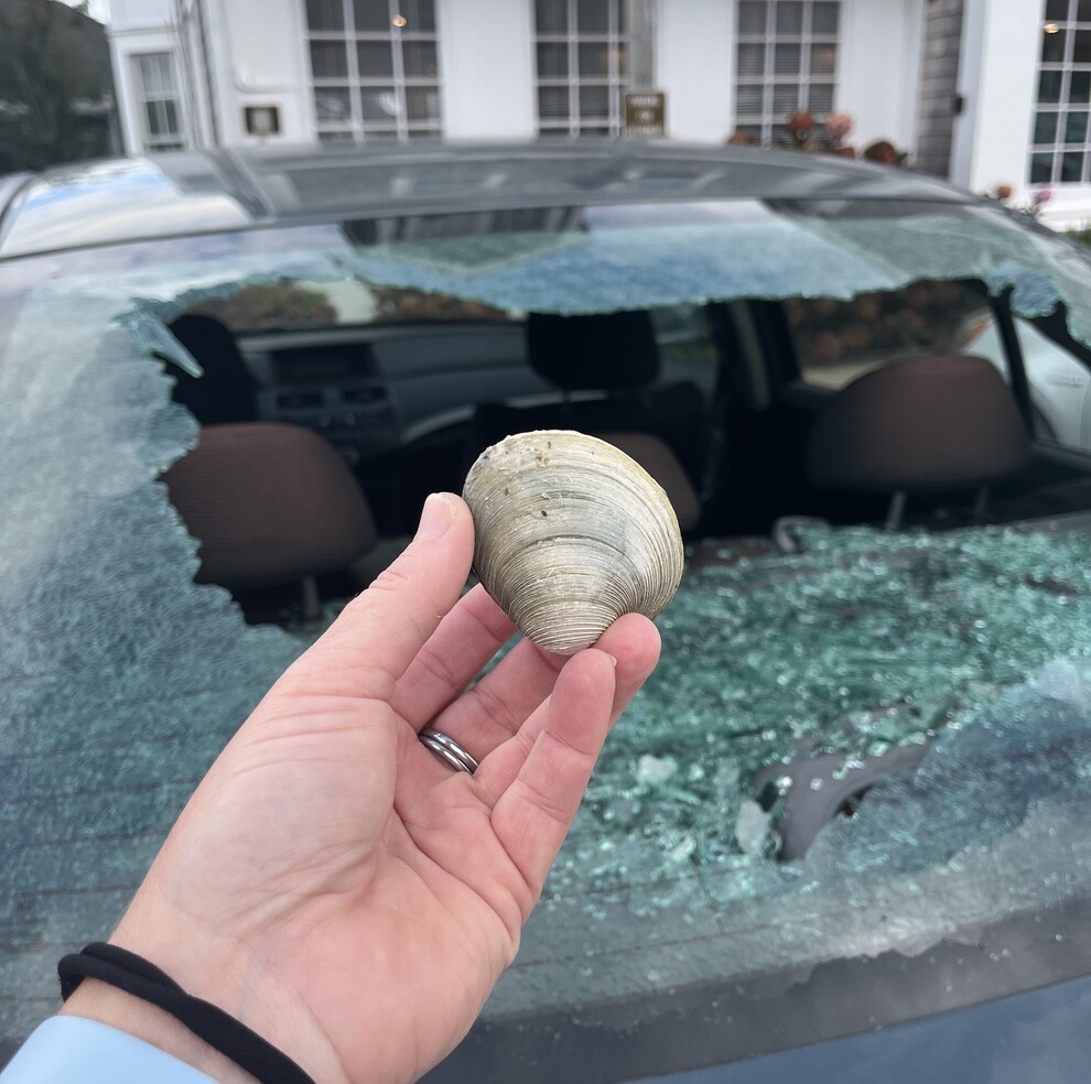 The Nantucket Police Department was called, and it took Officer Mike Mastriano only a few minutes to crack the case. The suspect, he said, wasn’t even human. A seagull had dropped a fresh quahog from high in the air, attempting to crack it open for a meal. But instead of hitting the pavement, it had crashed through the car’s rear windshield.