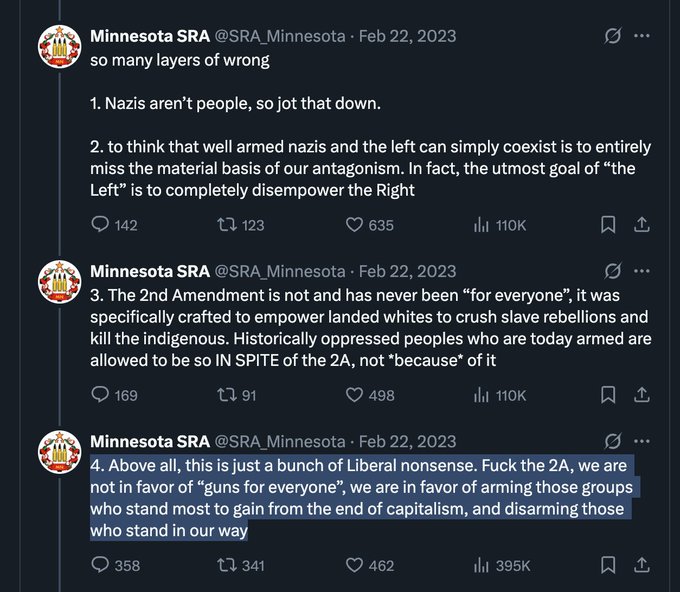 Socialist Rifle Association likes to portray themselves as a left wing gun rights/education organization, but they're simply not, they're a violent group connected to attacks including the Alvarado shooting (Benjamin Song was a member)