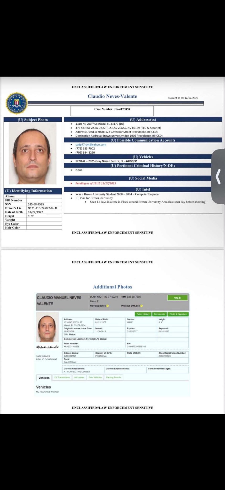 Claudio Manuel Neves-Valente identified as Brown University shooting suspect, found dead