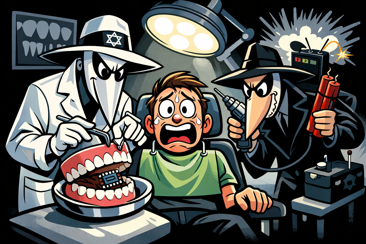 According to unnamed online sources, Israeli agents have infiltrated Iran posing as dentists, slipping micro-trackers into the teeth of senior officials during routine procedures. Videos have gone viral: drills spinning, shiny crowns gleaming, ominous captions screaming, “Could Mossad Hide Chips in Dentures?” Comments explode beneath them... speculation, disbelief, paranoia.