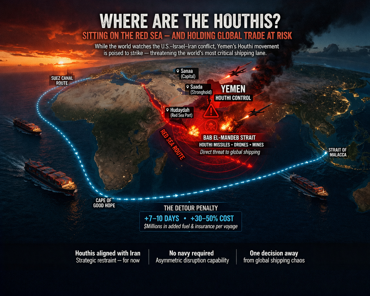 But down at the southern edge of the Red Sea sits Bab el-Mandeb... one of the most critical trade chokepoints on the planet.